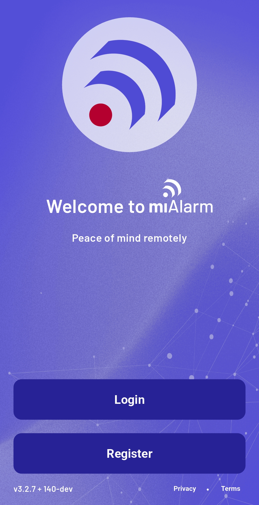 When you open miAlarm for the first time, you'll see a welcome screen with two options: